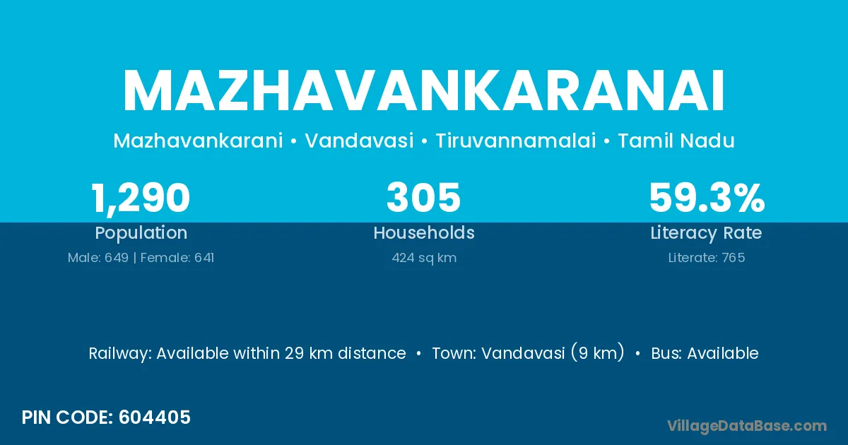 Mazhavankaranai village has a total population of 1,290 people, of which 649 are males and 641 are females.