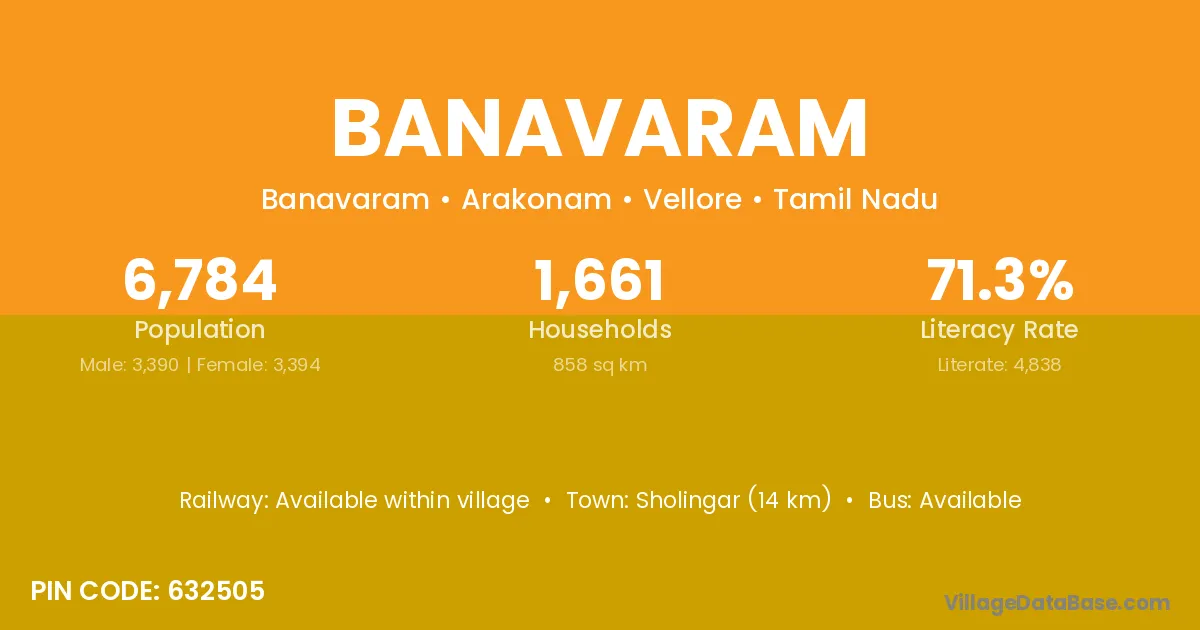 Sholingar (14 km) is the nearest town to Banavaram village for major economic activities and is located approximately 14 km away.
