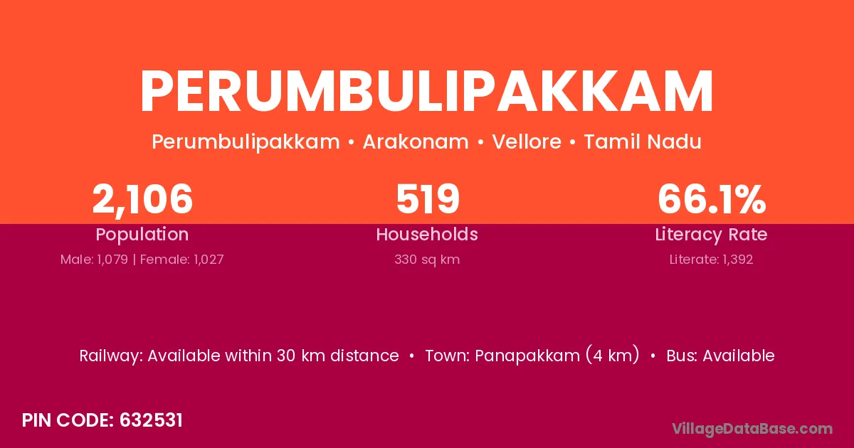 Panapakkam (4 km) is the nearest town to Perumbulipakkam village for major economic activities and is located approximately 4 km away.
