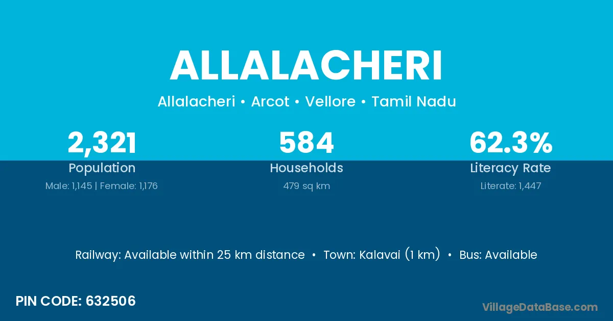 Kalavai (1 km) is the nearest town to Allalacheri village for major economic activities and is located approximately 1 km away.