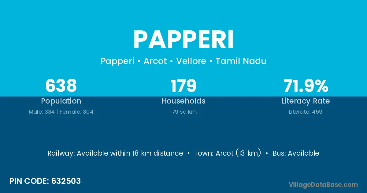Arcot (13 km) is the nearest town to Papperi village for major economic activities and is located approximately 13 km away.