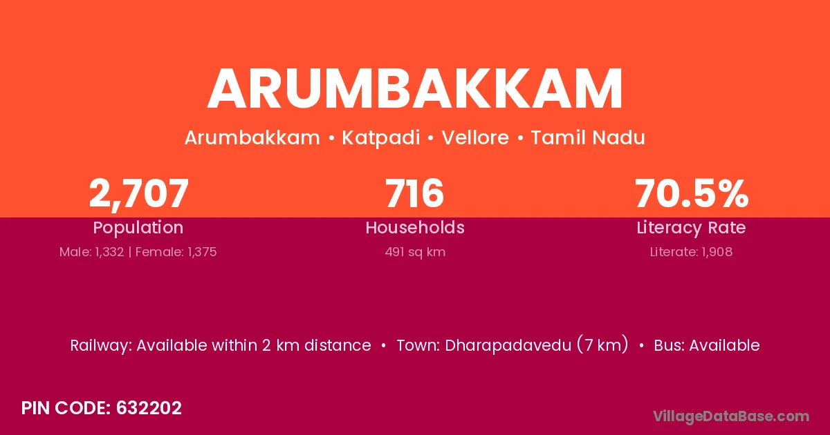 According to Census 2011 information, the village code of Arumbakkam village is 632202.