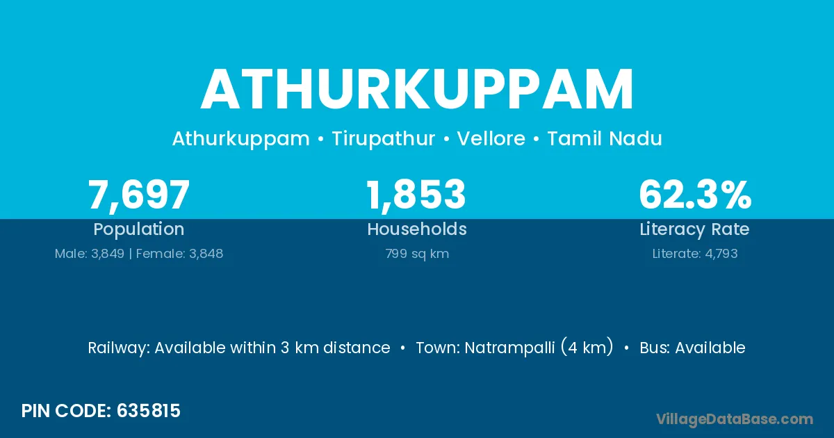 Natrampalli (4 km) is the nearest town to Athurkuppam village for major economic activities and is located approximately 4 km away.