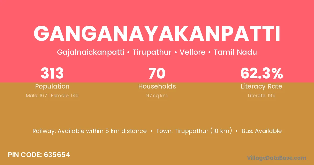 Tiruppathur (10 km) is the nearest town to Ganganayakanpatti village for major economic activities and is located approximately 10 km away.