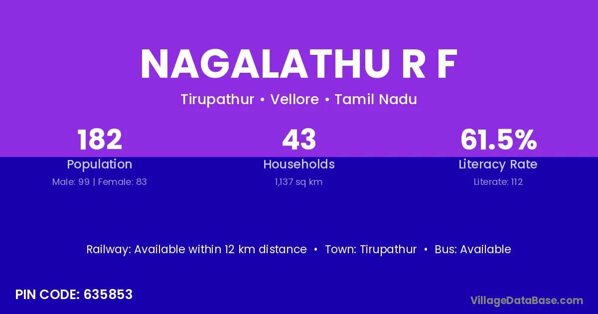 Tirupathur is the nearest town to Nagalathu R F village for major economic activities