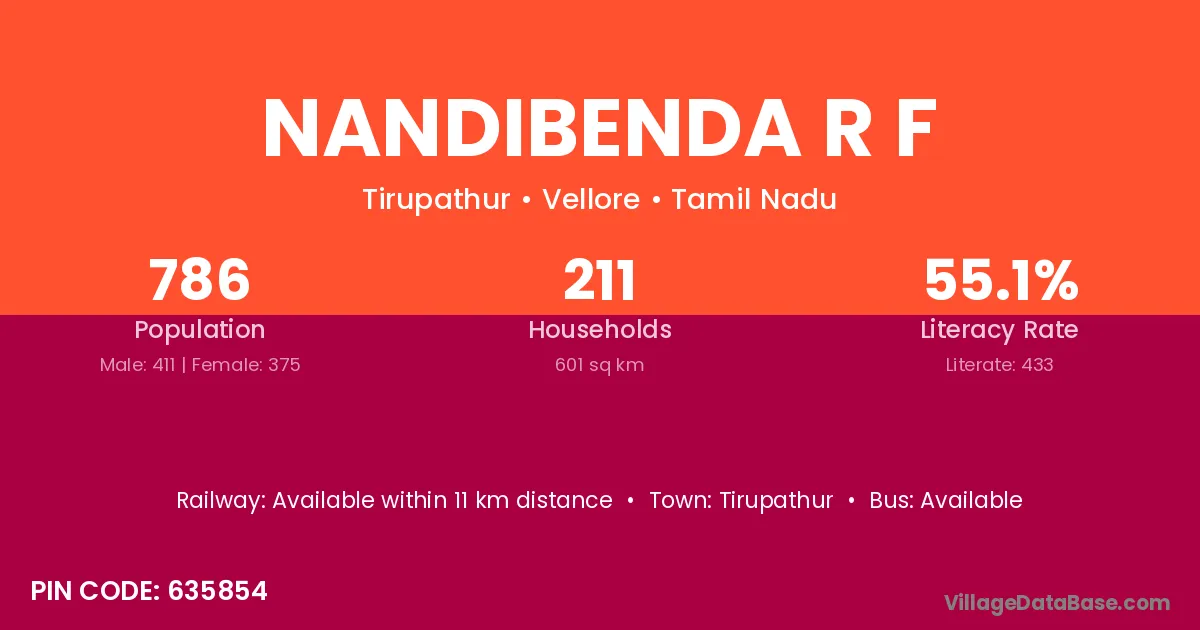 Tirupathur is the nearest town to Nandibenda R F village for major economic activities