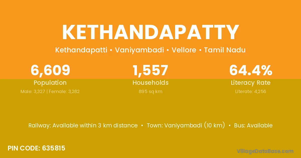 Vaniyambadi (10 km) is the nearest town to Kethandapatty village for major economic activities and is located approximately 10 km away.