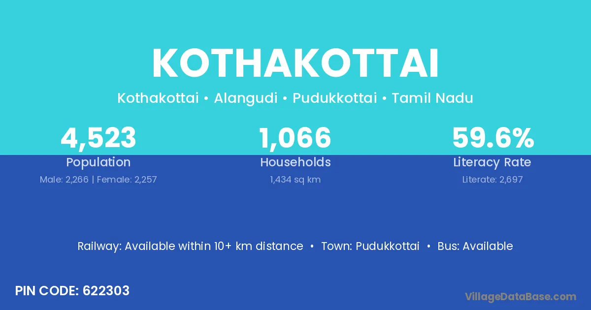 There are approximately 2,166 households in Kothakottai village.