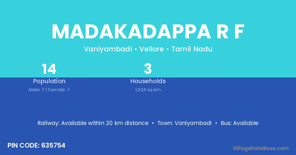 Vaniyambadi is the nearest town to Madakadappa R F village for major economic activities