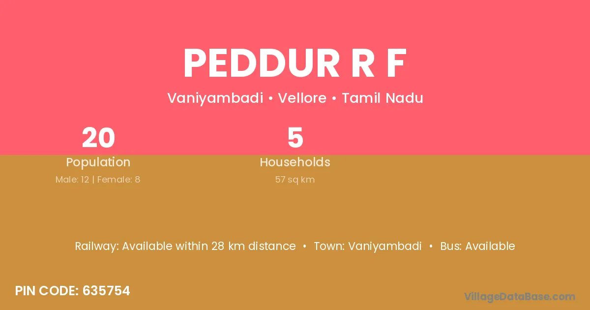 Vaniyambadi is the nearest town to Peddur R F village for major economic activities
