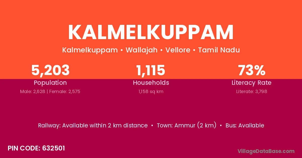 Ammur (2 km) is the nearest town to Kalmelkuppam village for major economic activities and is located approximately 2 km away.