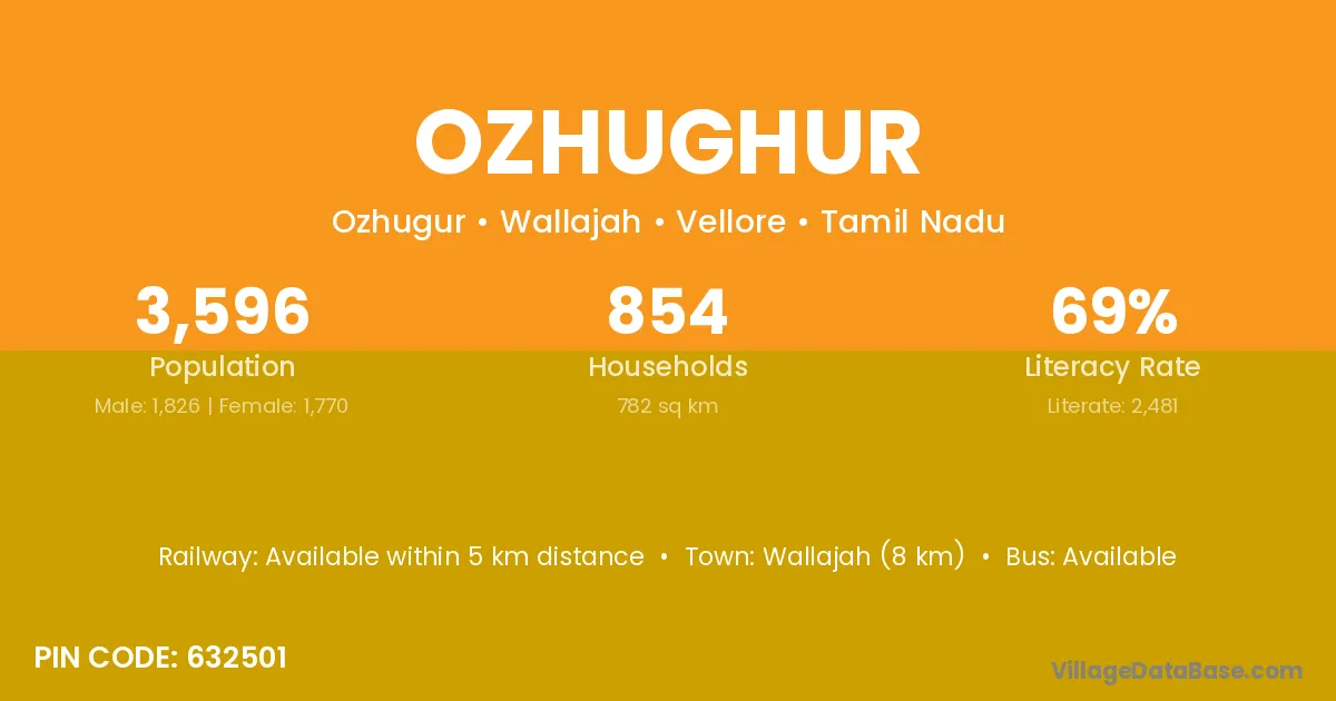 Wallajah (8 km) is the nearest town to Ozhughur village for major economic activities and is located approximately 8 km away.