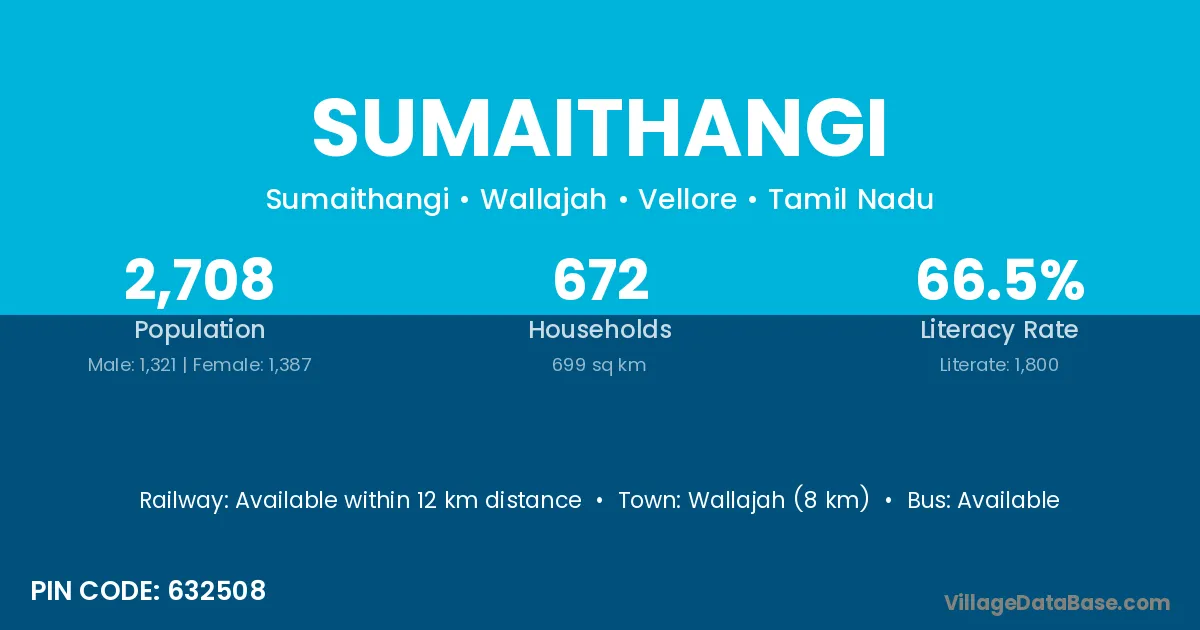 Wallajah (8 km) is the nearest town to Sumaithangi village for major economic activities and is located approximately 8 km away.