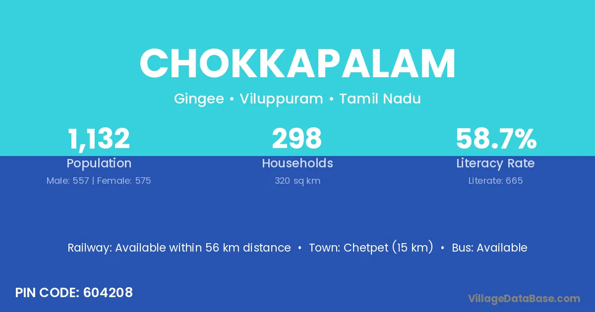 Chokkapalam village has a total population of 1,132 people, of which 557 are males and 575 are females.
