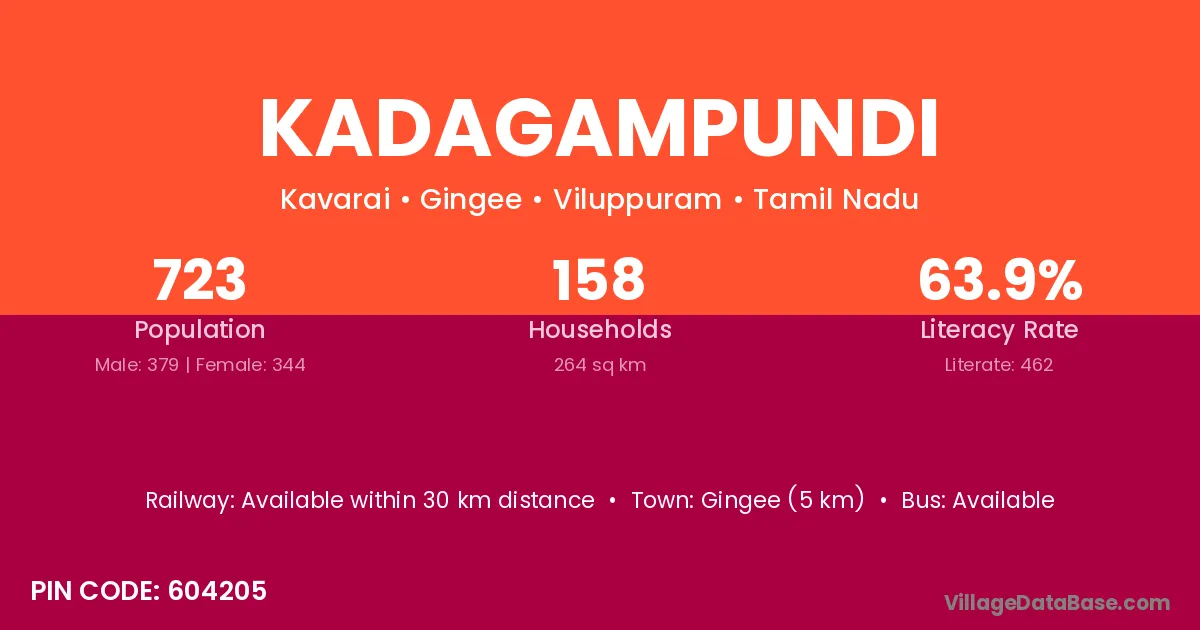 Gingee (5 km) is the nearest town to Kadagampundi village for major economic activities and is located approximately 5 km away.