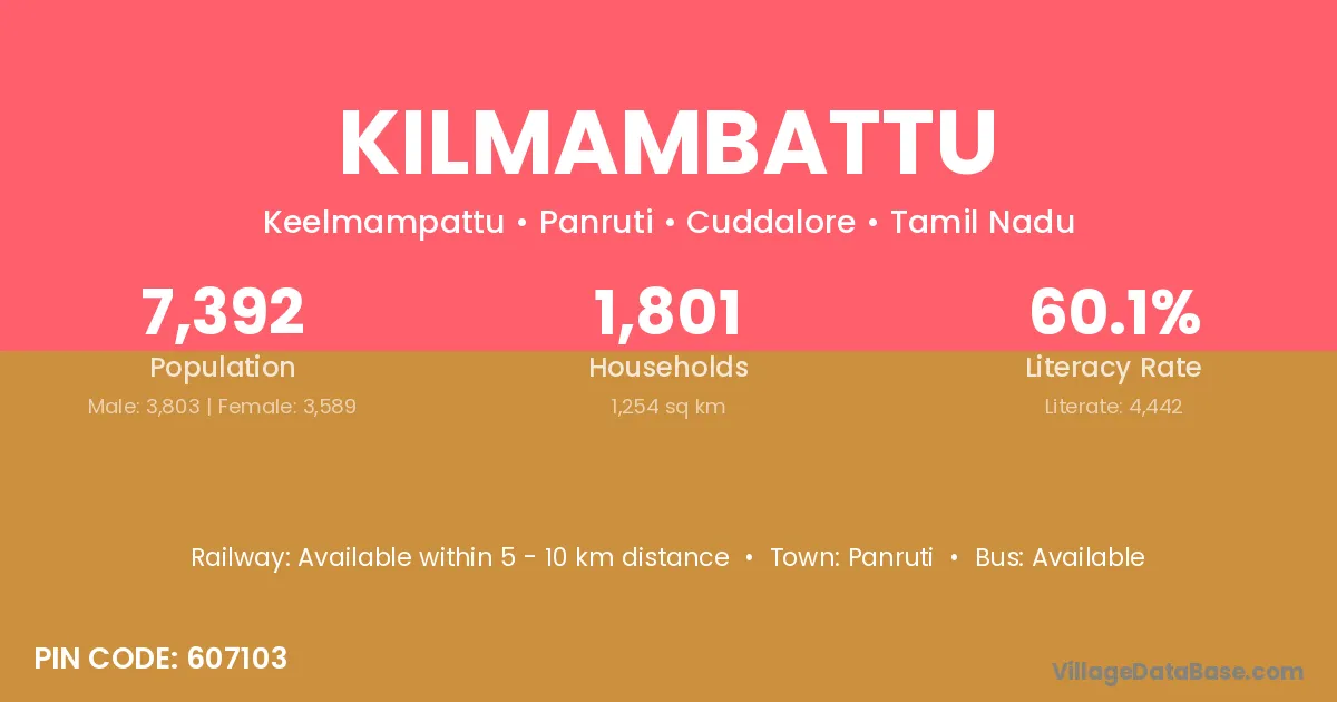 Gingee (13 km) is the nearest town to Kilmambattu village for major economic activities and is located approximately 13 km away.