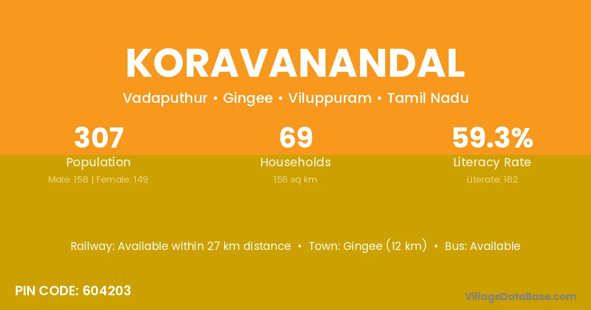 Koravanandal village has a total population of 307 people, of which 158 are males and 149 are females.