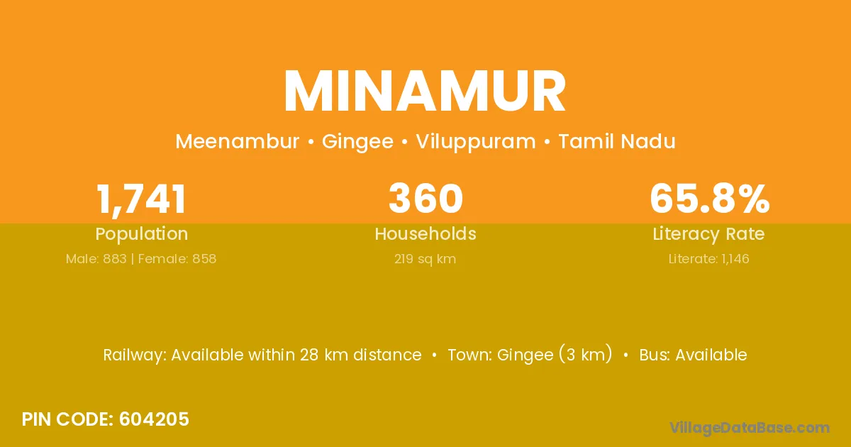Gingee (3 km) is the nearest town to Minamur village for major economic activities and is located approximately 3 km away.