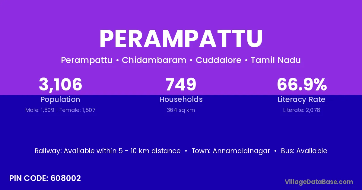 Tindivanam (19 km) is the nearest town to Perampattu village for major economic activities and is located approximately 19 km away.
