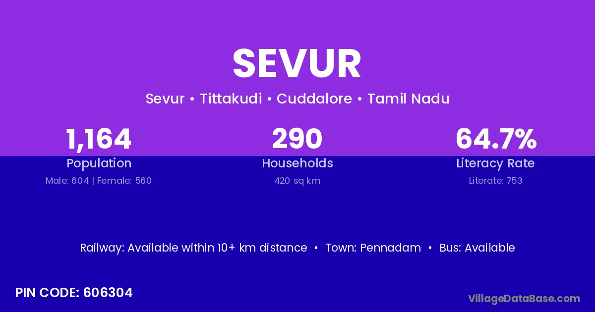 According to Census 2011 information, the village code of Sevur village is 604306.