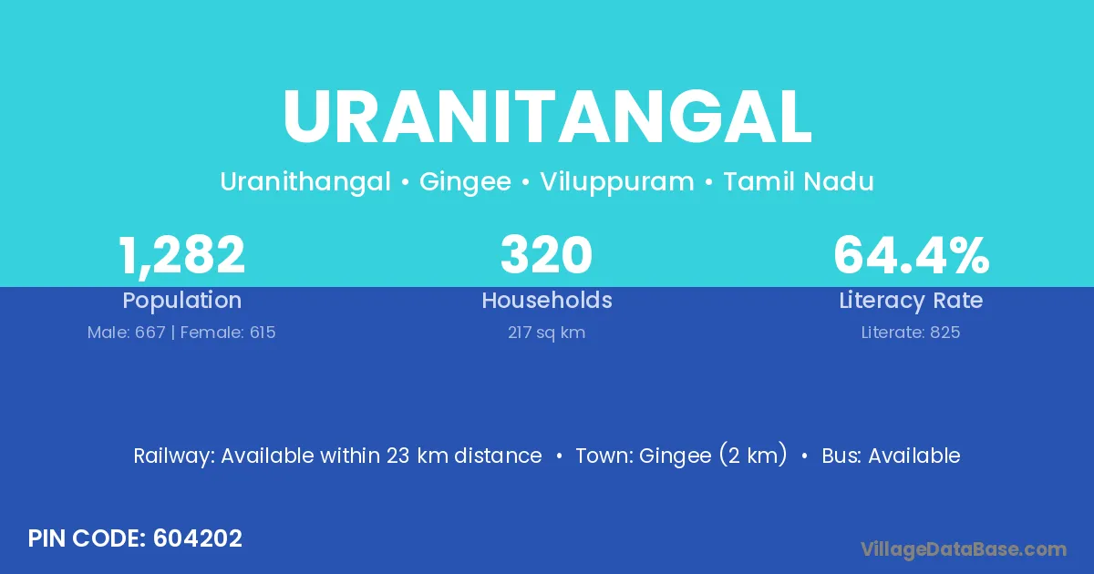 Gingee (2 km) is the nearest town to Uranitangal village for major economic activities and is located approximately 2 km away.