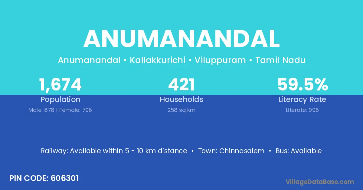 Chinnasalem is the nearest town to Anumanandal village for major economic activities