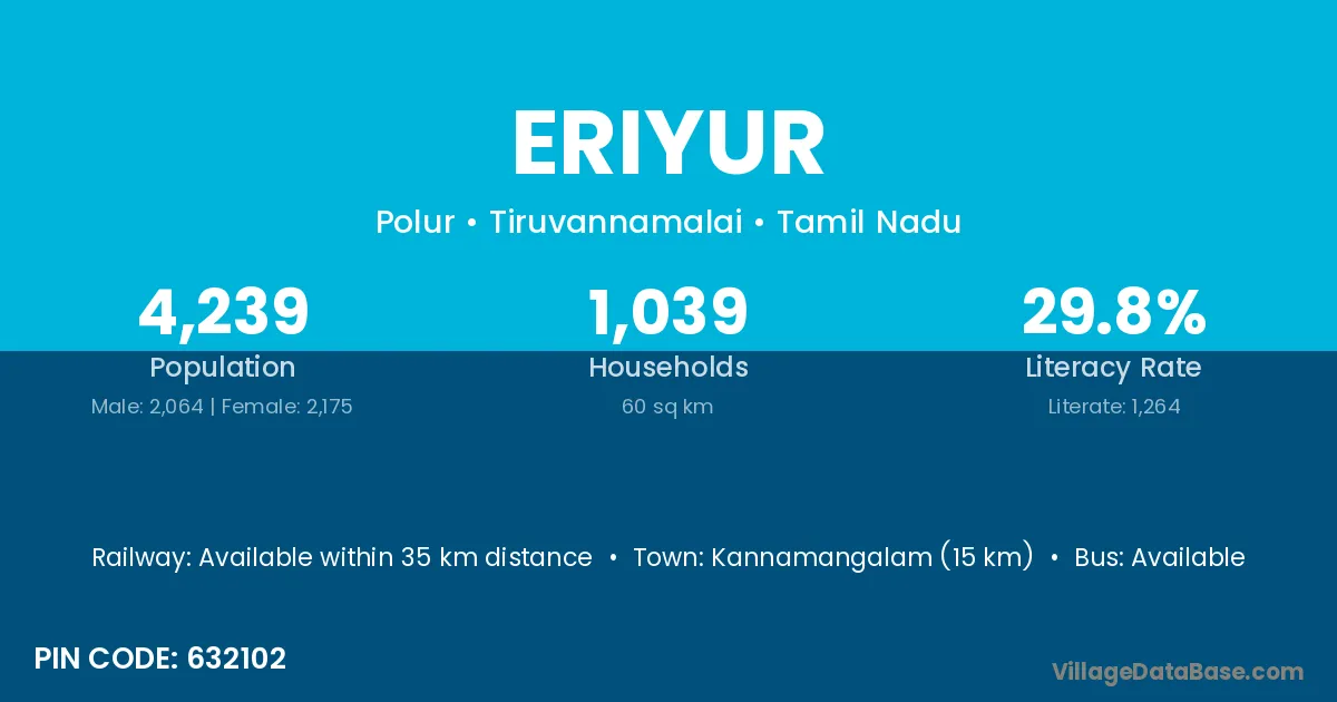 According to Census 2011 information, the village code of Eriyur village is 606204.