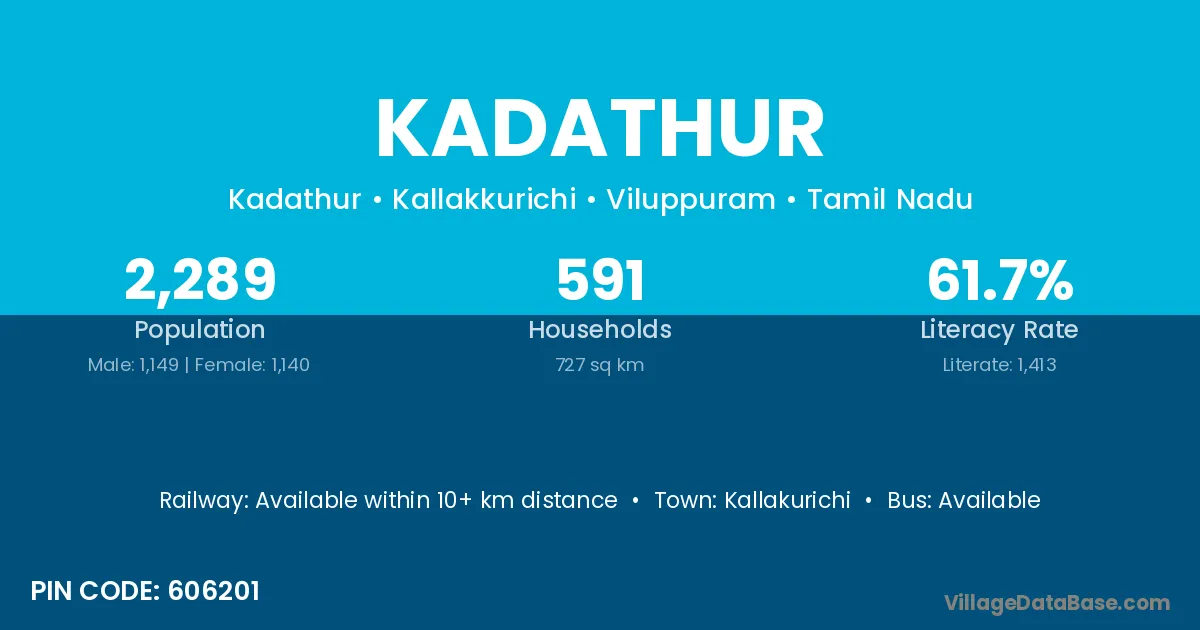 According to Census 2011 information, the village code of Kadathur village is 606201.