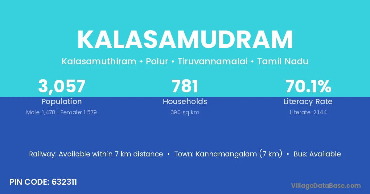 According to Census 2011 information, the village code of Kalasamudram village is 606301.