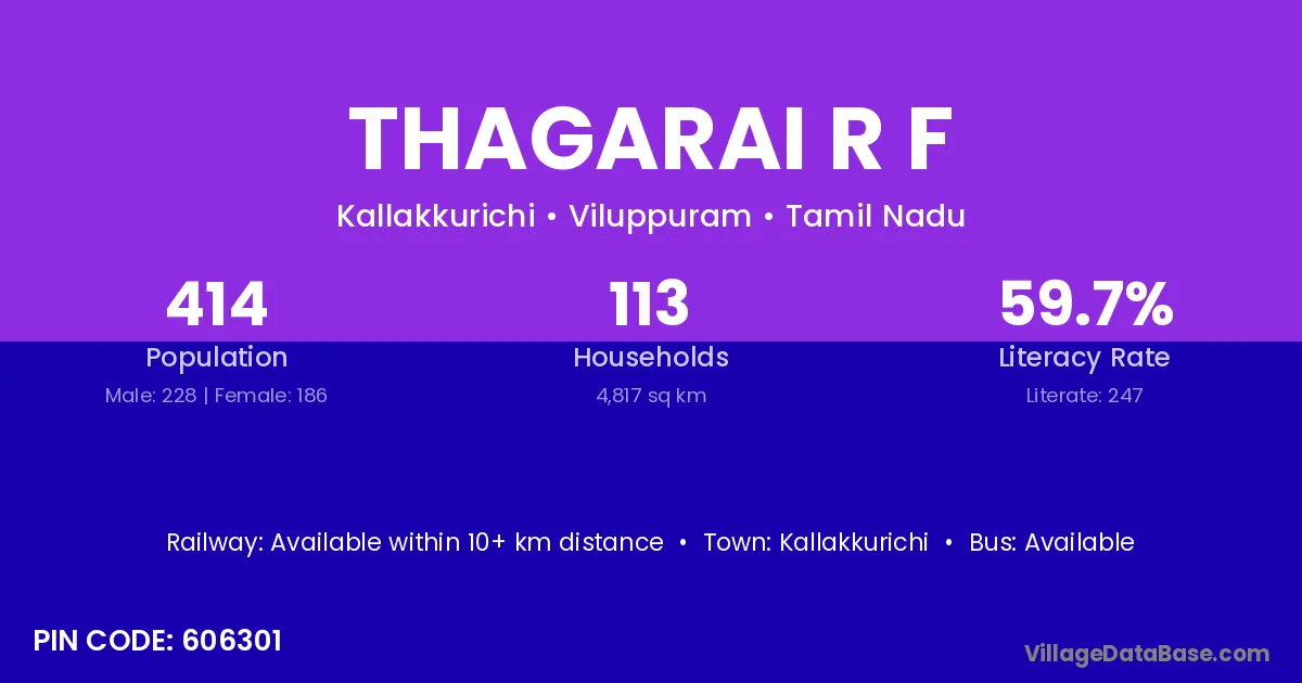 Kallakkurichi is the nearest town to Thagarai R F village for major economic activities
