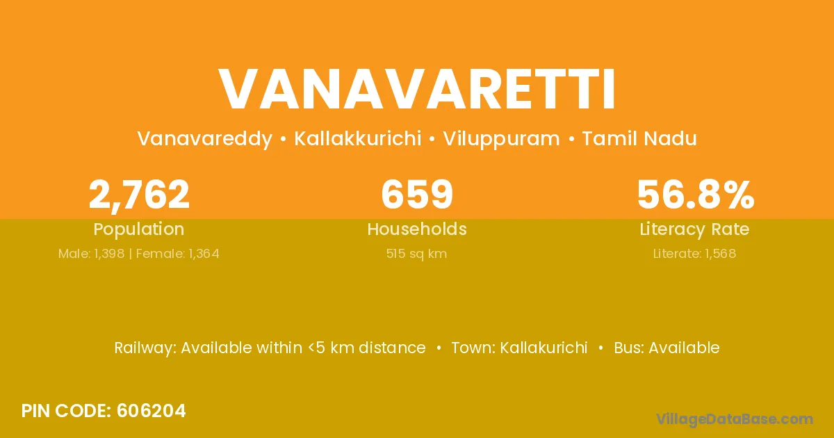 According to Census 2011 information, the village code of Vanavaretti village is 606204.