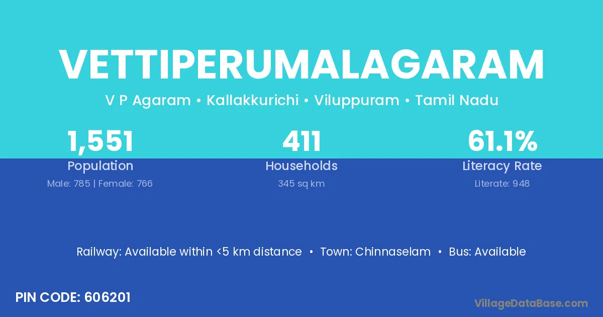 Vettiperumalagaram village has a total population of 1,551 people, of which 785 are males and 766 are females.