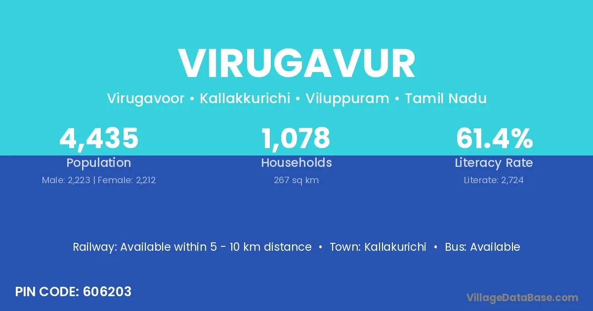Kallakurichi is the nearest town to Virugavur village for major economic activities