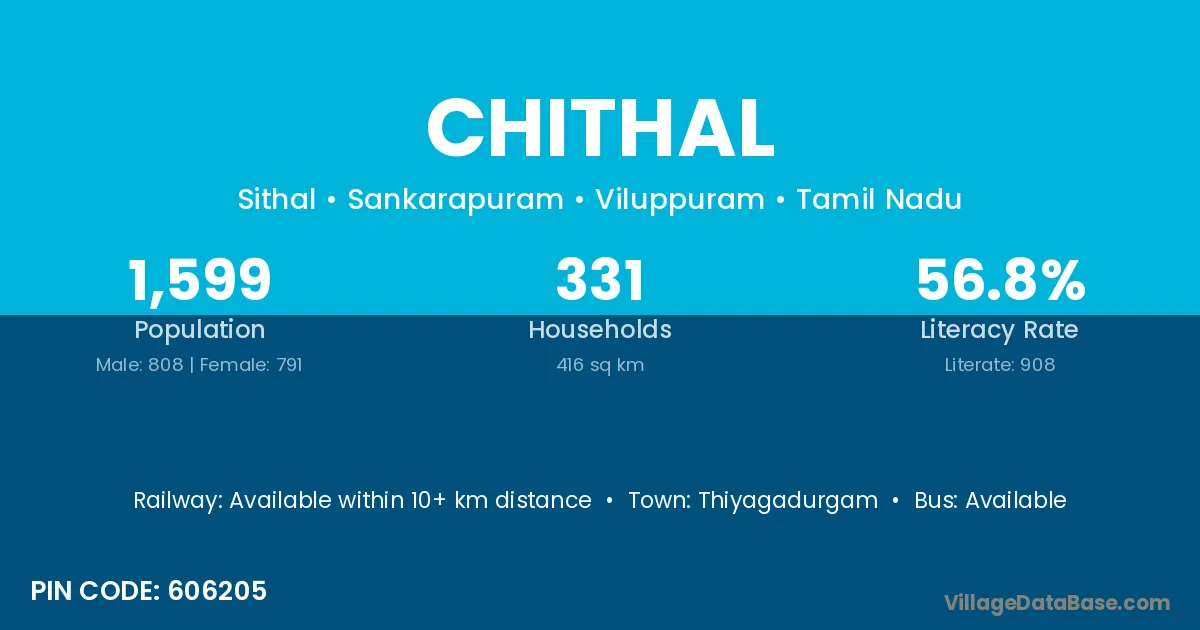 According to Census 2011 information, the village code of Chithal village is 606205.