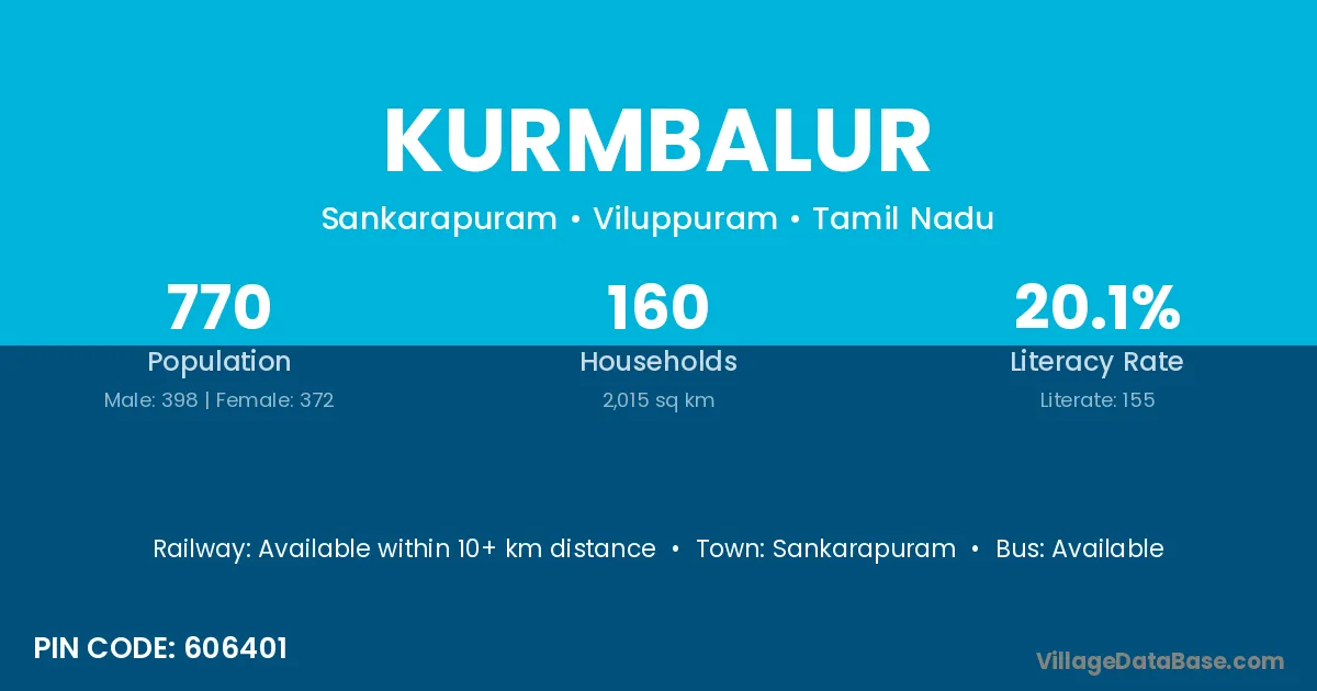 Sankarapuram is the nearest town to Kurmbalur village for major economic activities
