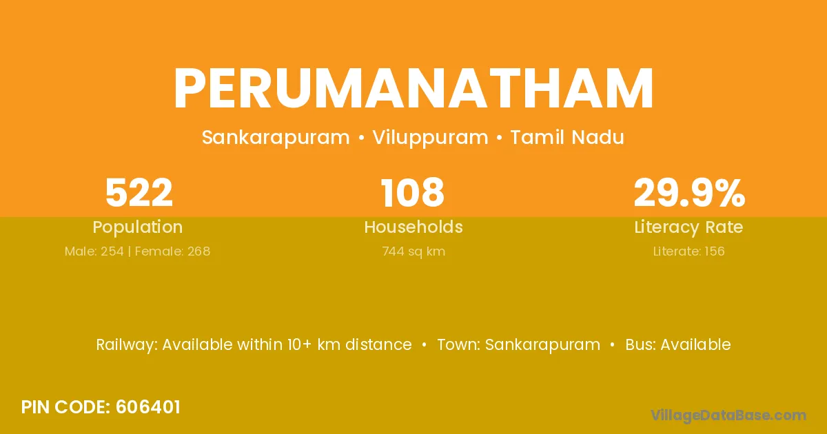 Sankarapuram is the nearest town to Perumanatham village for major economic activities