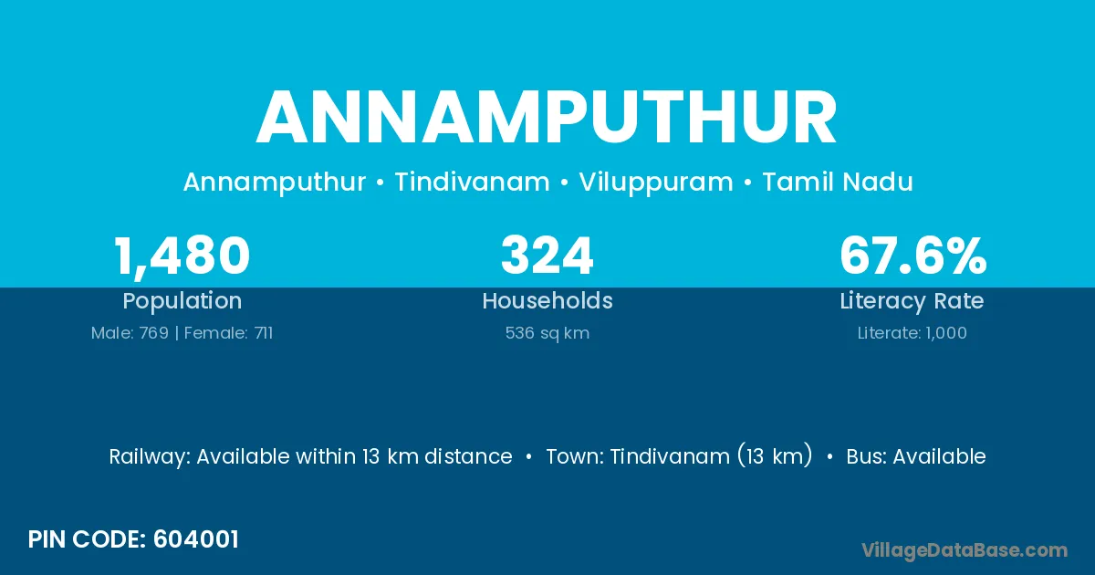 Annamputhur village has a total population of 1,480 people, of which 769 are males and 711 are females.
