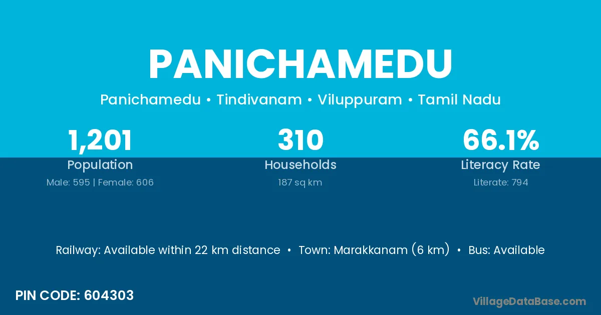 Panichamedu village has a total population of 1,201 people, of which 595 are males and 606 are females.