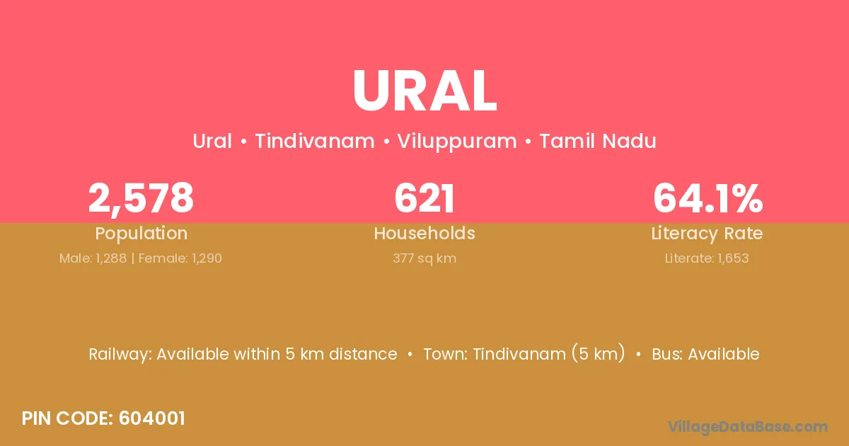 Tindivanam (5 km) is the nearest town to Ural village for major economic activities and is located approximately 5 km away.