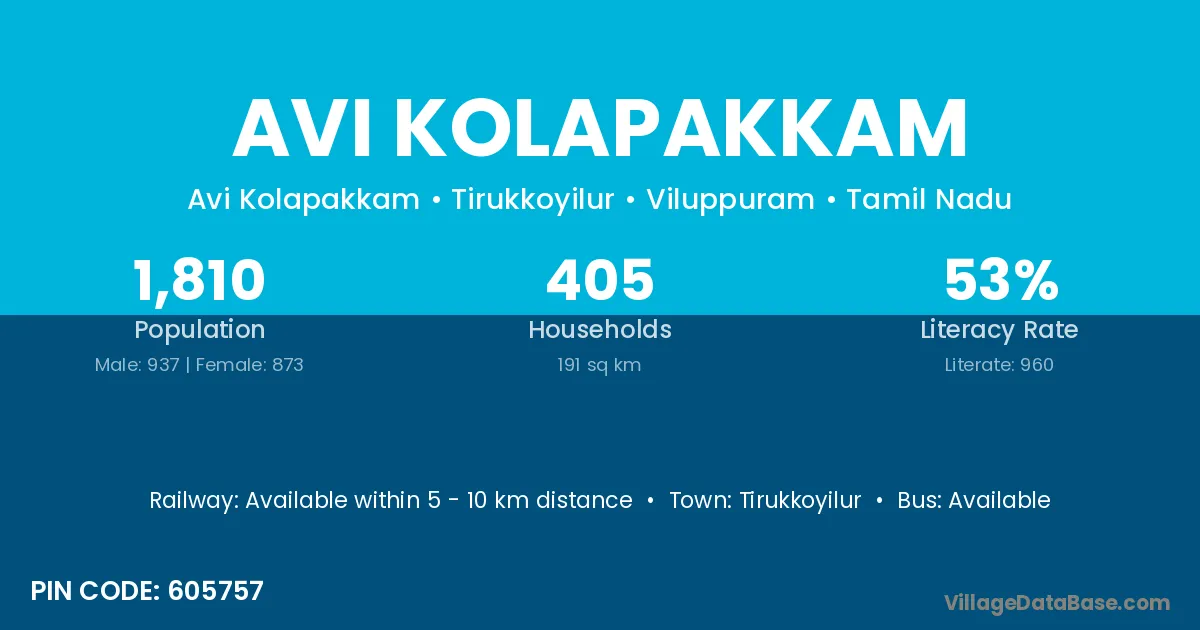 According to Census 2011 information, the village code of Avi Kolapakkam village is 605757.