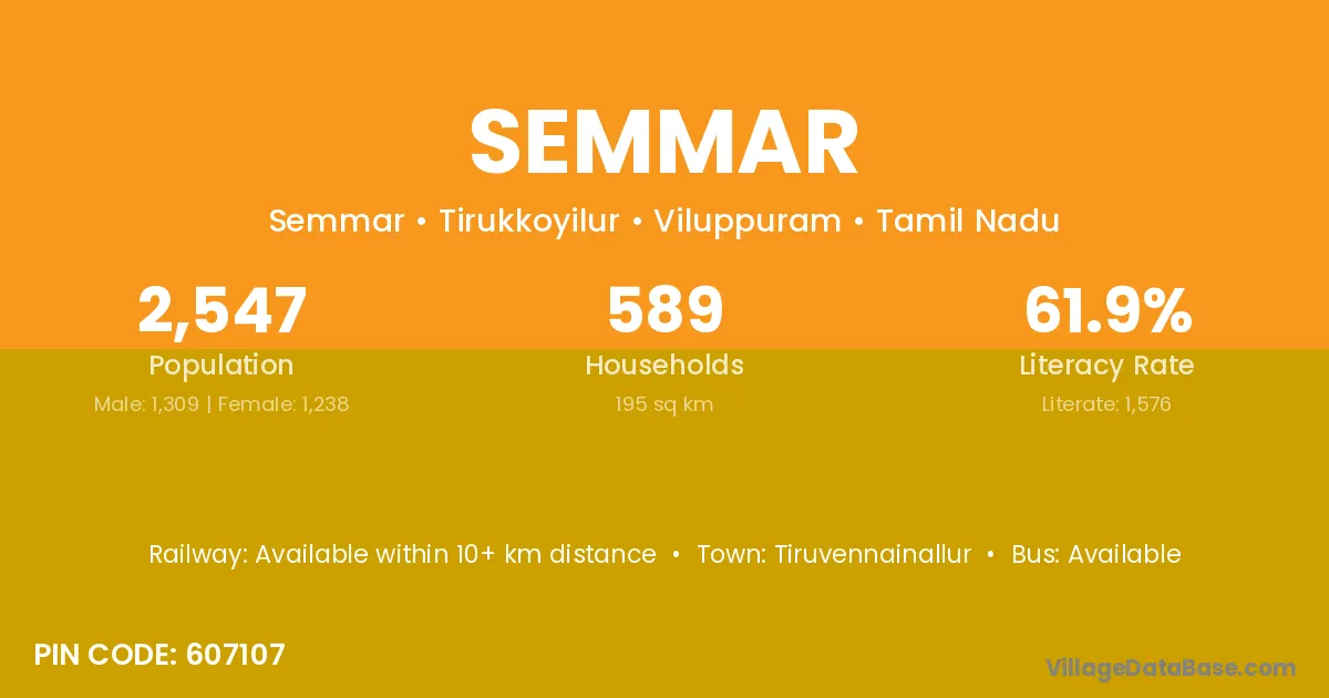 Tiruvennainallur is the nearest town to Semmar village for major economic activities