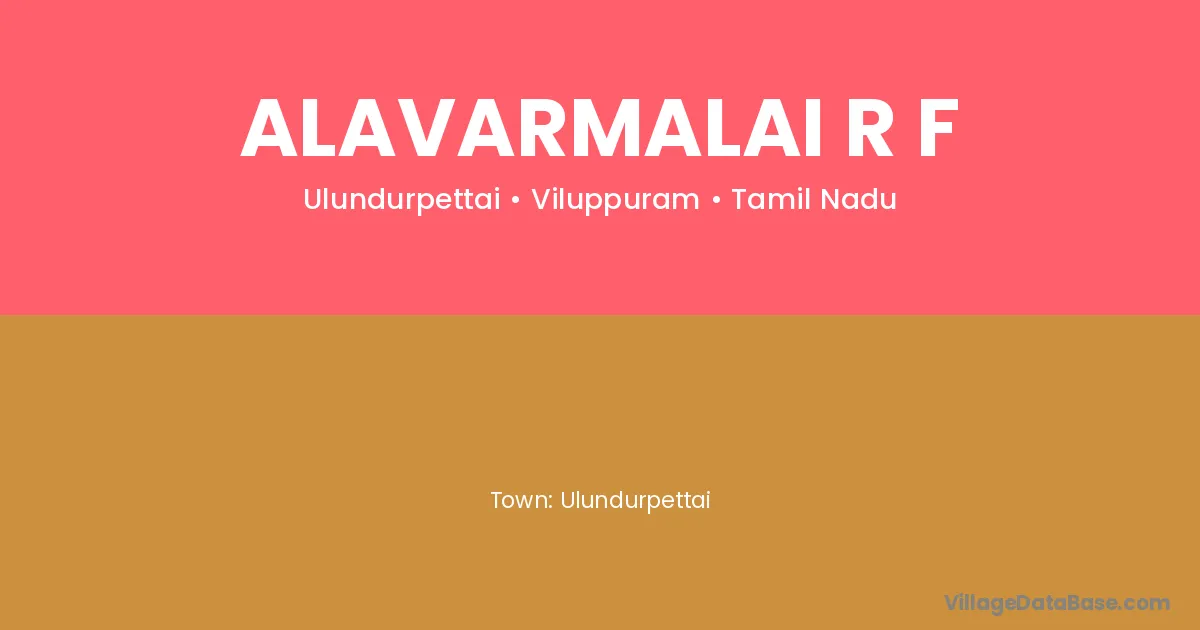 Ulundurpettai is the nearest town to Alavarmalai R F village for major economic activities