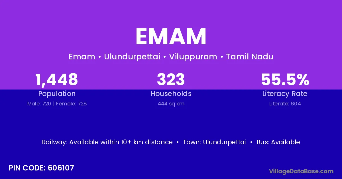 Ulundurpettai is the nearest town to Emam village for major economic activities
