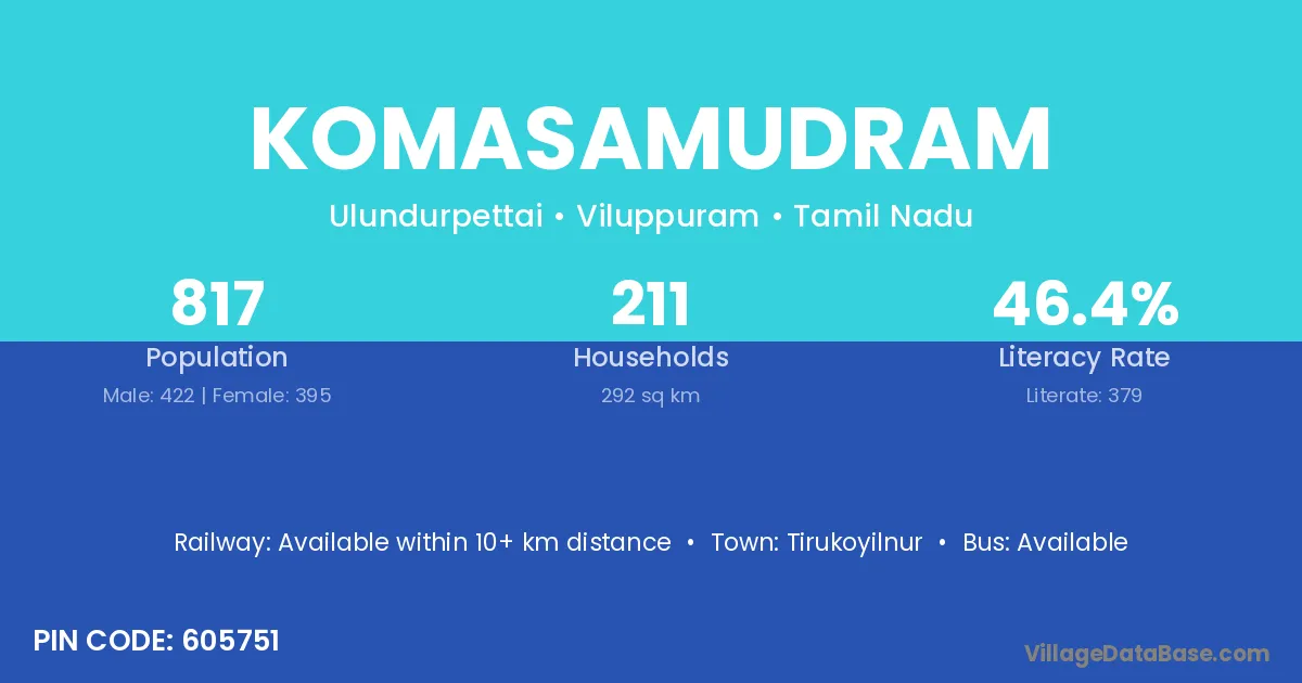 Komasamudram village has a total population of 817 people, of which 422 are males and 395 are females.