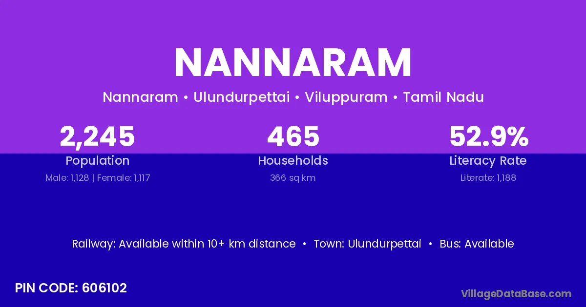 Ulundurpettai is the nearest town to Nannaram village for major economic activities
