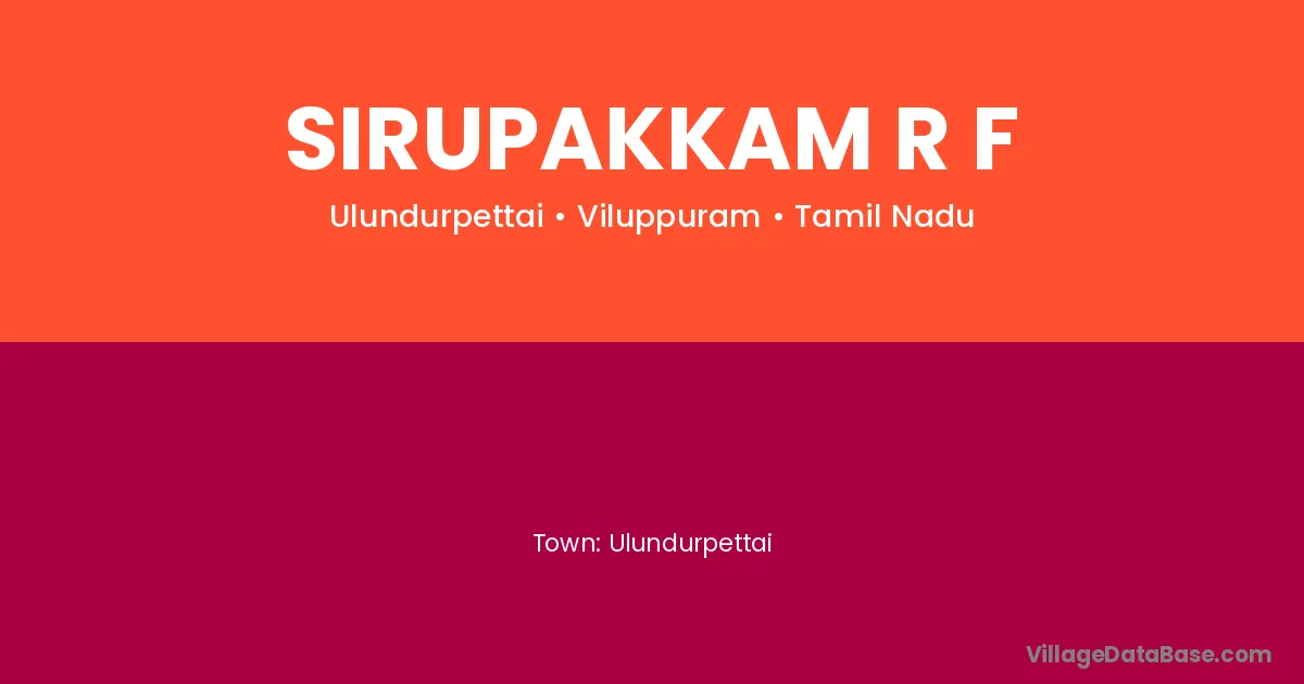 Ulundurpettai is the nearest town to Sirupakkam R F village for major economic activities