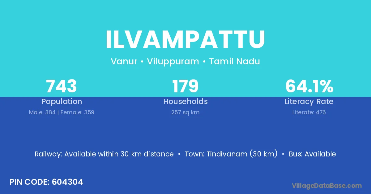 Ilvampattu village has a total population of 743 people, of which 384 are males and 359 are females.