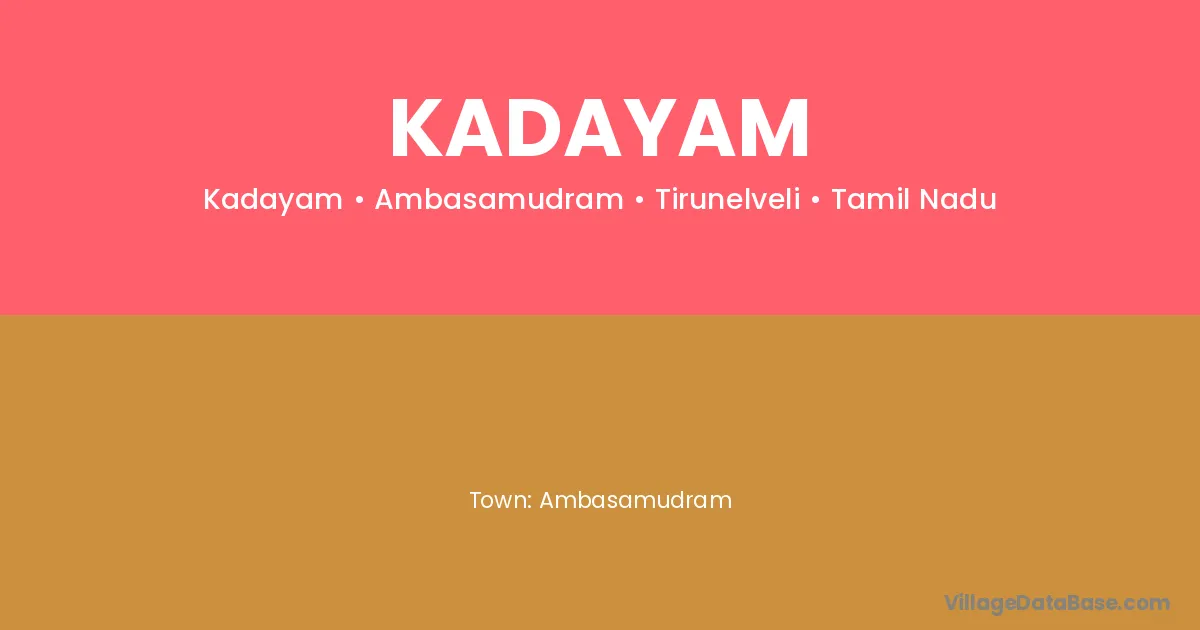 Tirukkoyilur (17 km) is the nearest town to Kadayam village for major economic activities and is located approximately 17 km away.