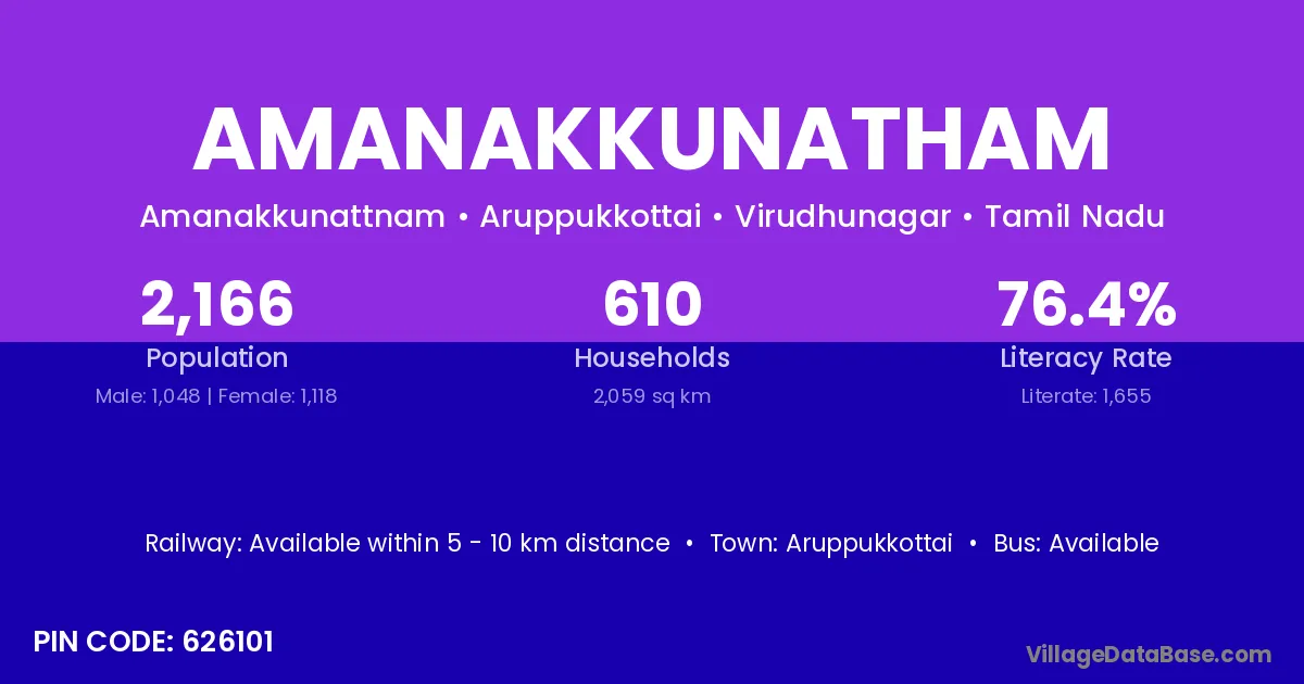 Aruppukkottai is the nearest town to Amanakkunatham village for major economic activities