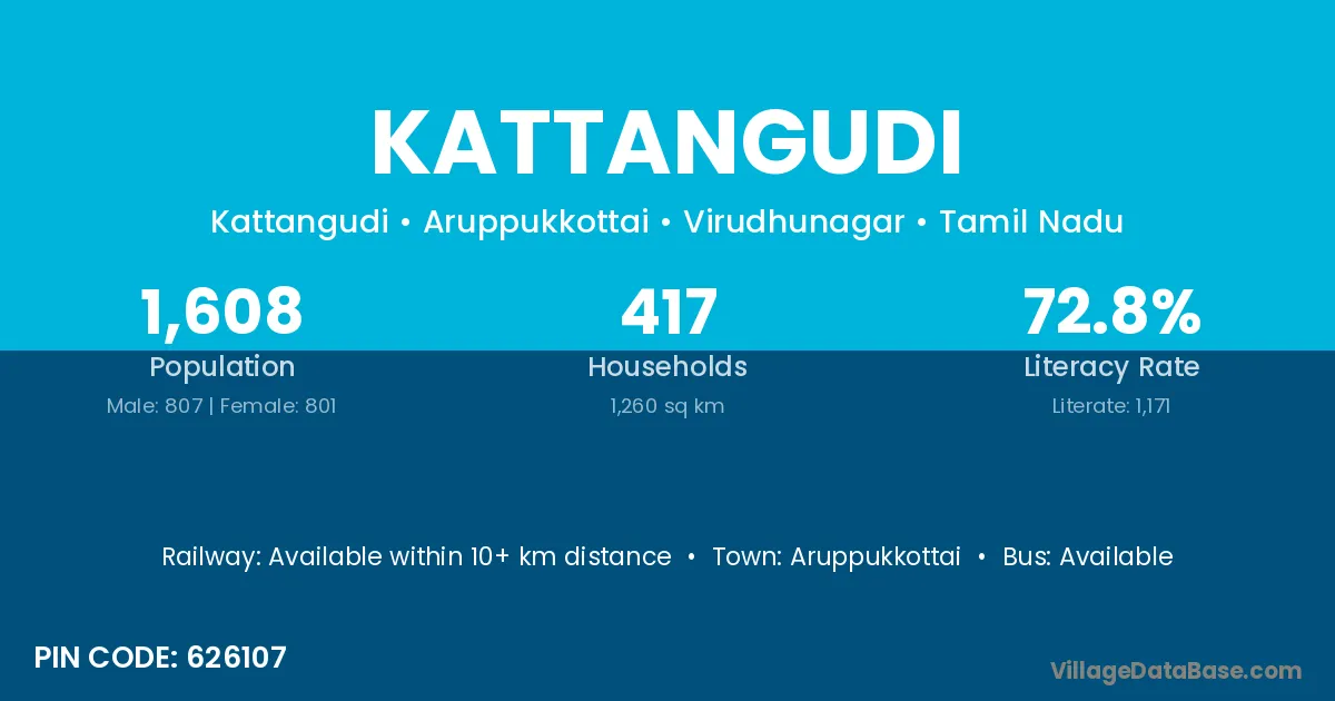 There are approximately 417 households in Kattangudi village.